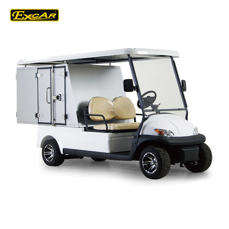 O carrinho de golfe Excar será embalado numa caixa de aço.